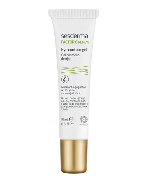 El Contorno de ojos Factor G Renew de Sesderma incorpora un potente cóctel de antioxidantes que combate el daño de los radicales libres y evita la destrucción del colágeno y la elastina de la piel. Además, la centella asiática y las células madre aportan propiedades calmantes, reparadoras y regeneradoras. No causan irritaciones, exfoliación, ni aumentan la sensibilidad al sol, lo que lo hace idóneo para pieles sensibles y reactivas.