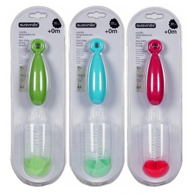 El cepillo limpiabiberón dúo facilita la limpieza del biberón y de las tetinas.